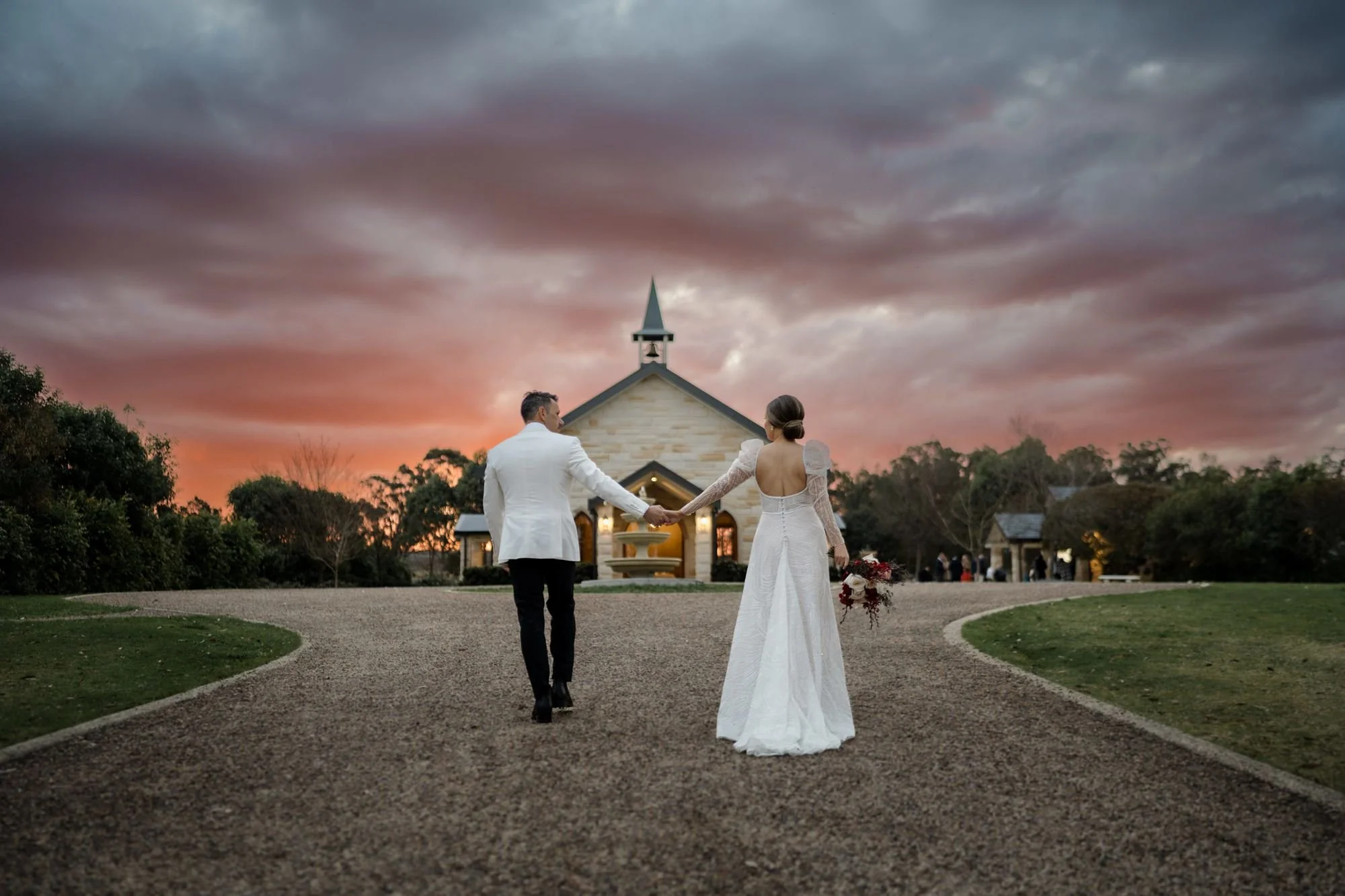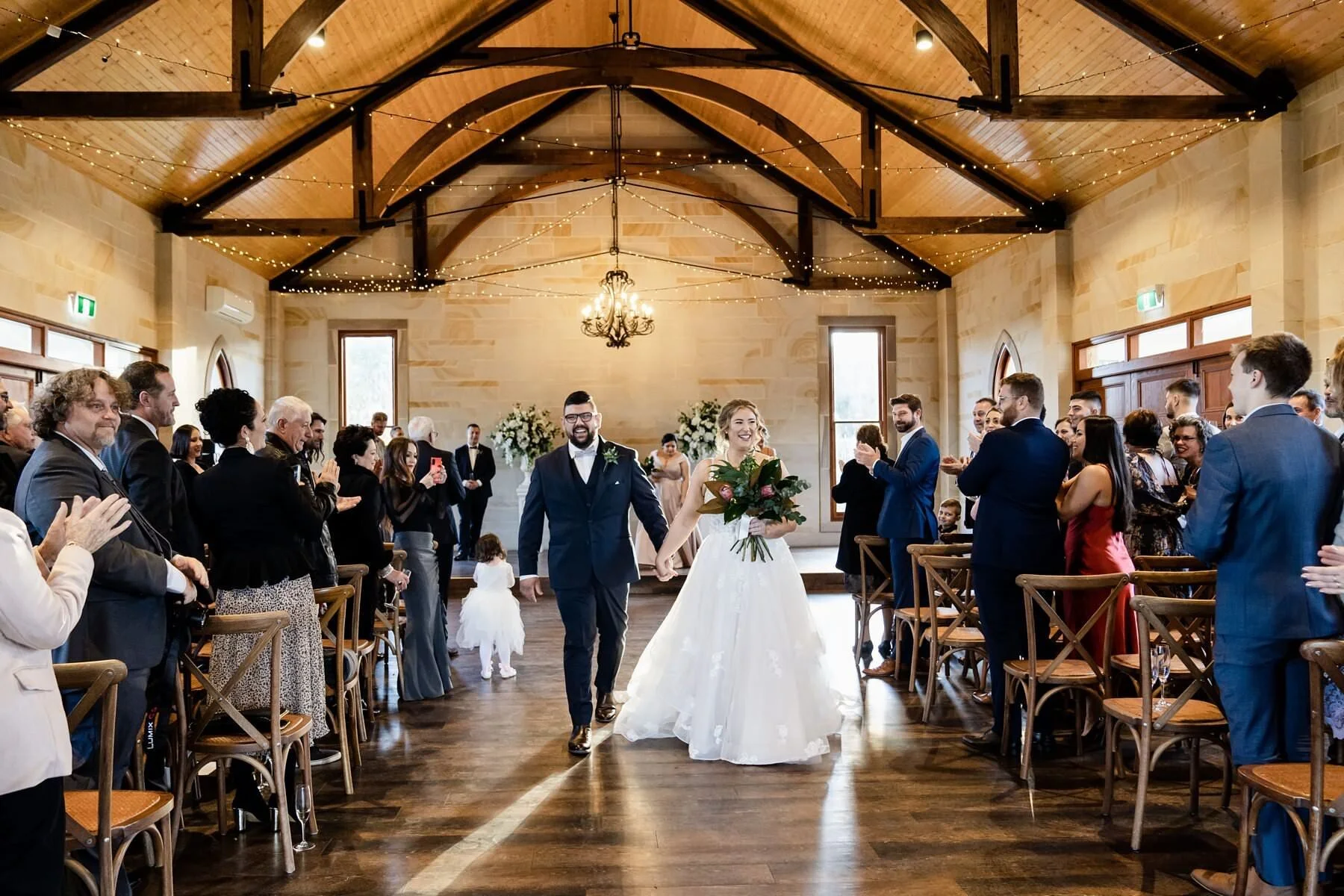 Although conveniently nestled right at the gateway to the Hunter, just outside Pokolbin, Peterson House feels like its own little escape. The grounds are beautifully maintained year-round, with vineyards, open lawns, rose gardens, and that signature sandstone chapel—all on one property. Everything flows smoothly because who wants to drive between ceremony and reception spaces on their wedding day?